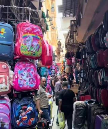كوم الشيخ سلامة.. مكان شارع الشنط بالموسكي وأسعار شنط المدارس فيه