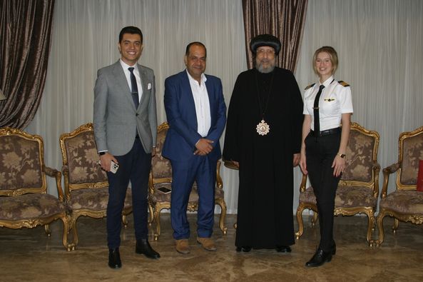 الأنبا إرميا الأسقف العام ورئيس المركز الثقافي القبطي الأرثوذكسي يستقبل ميرولا ماجد أصغر كابتن طيار في مصر