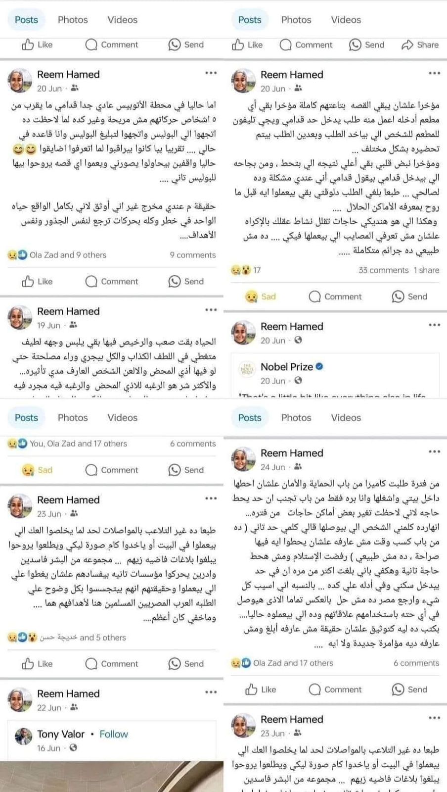 وأوضحت صديقتها أيضًا، أن ريم حامد لقيت مصرعها عقب عودتها من مصر مباشرة، وأنها لم يبدو عليها أي طاقة سلبية خلال معاملاتها مع أصدقائها واصفة إيها بأنها إيجابية وتسعى للاجتهاد دائمًا.