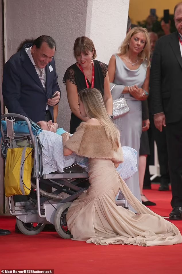 خلال سير أنجلينا جولي على السجادة الحمراء رأت معجبًا مصاب بمرض التصلب الجاني الضموري وممدد على سرير، فذهبت له وانحنت ووضعت يدها بلطف على كتفه وتحدثت إليه.
