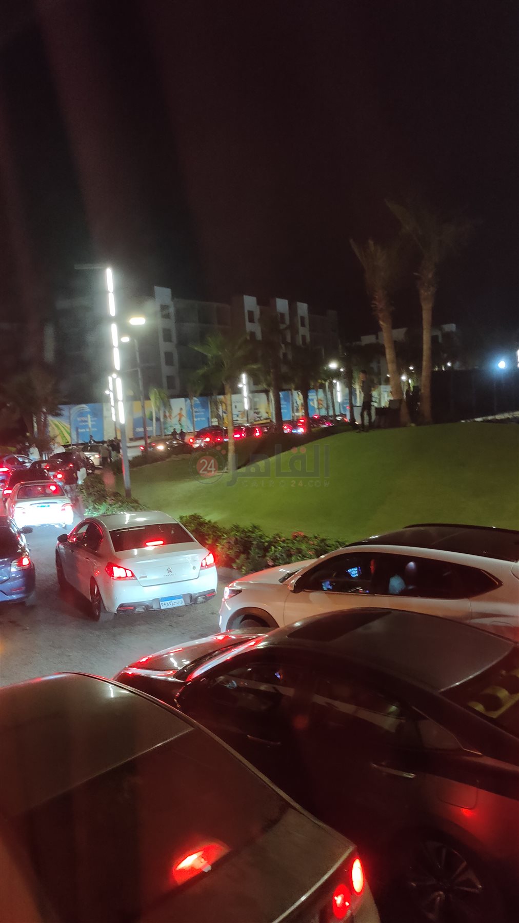 تكدس سيارات الجمهور لحضور حفل الفنان تامر عاشور ببورسعيد
