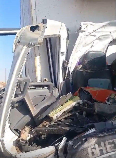 تصادم سيارتي نقل على طريق النمسا الصحراوي الغربي جنوب الأقصر