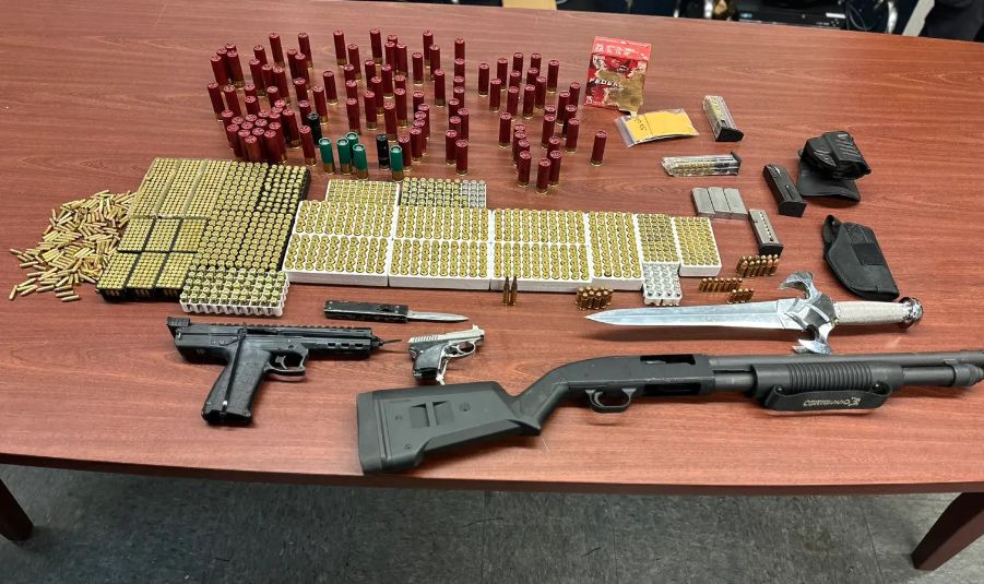وخلال عملية التفتيش، صادرت الشرطة أسلحة نارية وذخائر إضافية، بما في ذلك بندقية مخبأة داخل خزانة غرفة نوم كاستيجليا، كما عثرت الشرطة على مسدس مزود بـ مخزن كبير السعة.