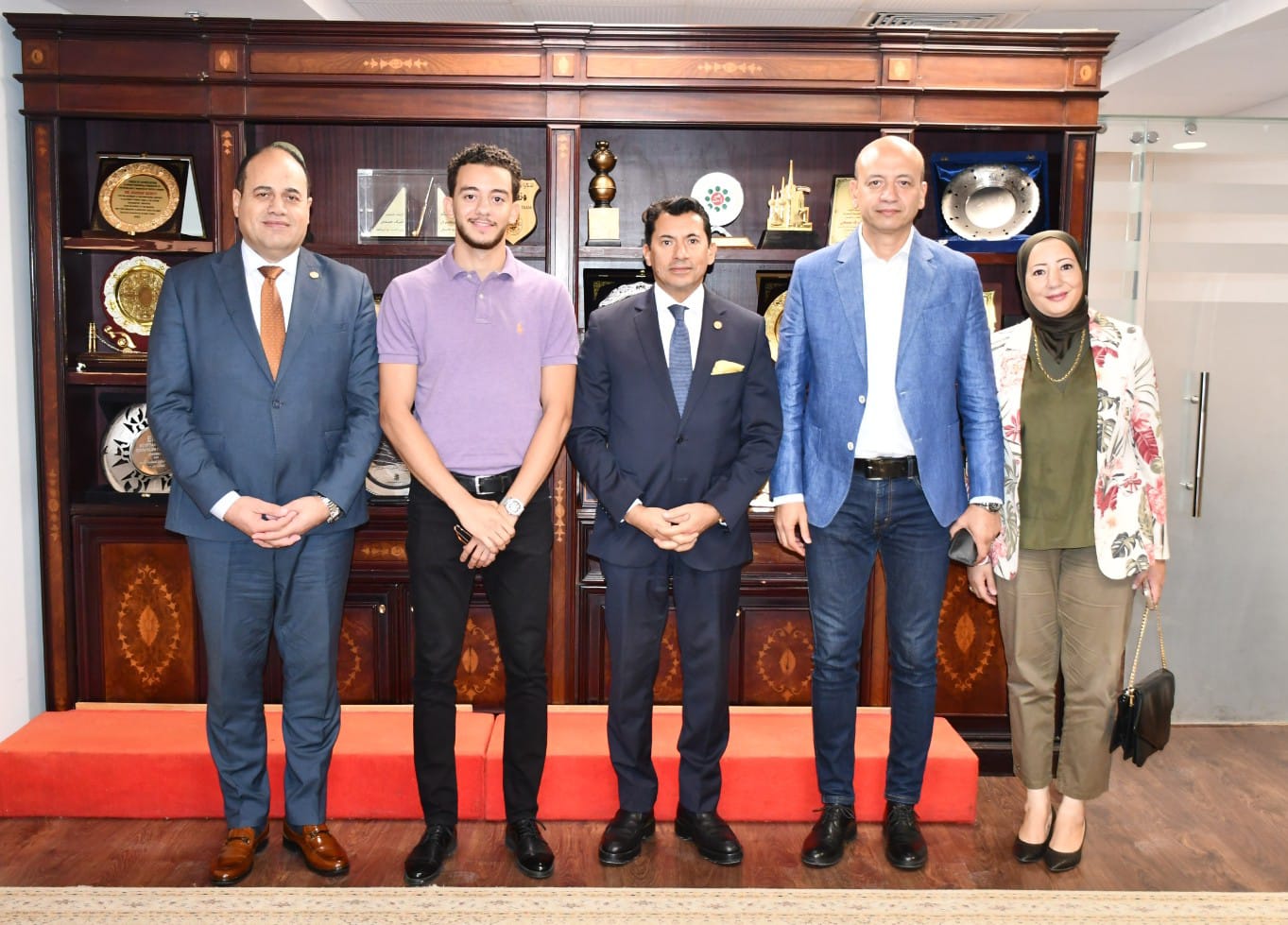 وزير الرياضة يلتقي محمد السيد بطل السلاح