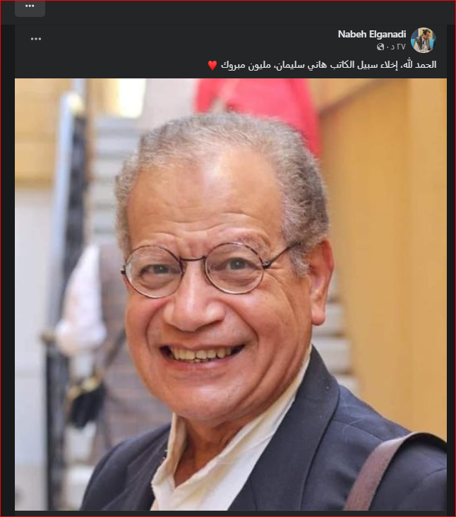 وكتب المحامي نبيل الجنادي، خلال منشور له على صفحته الرسمية على موقع التواصل الاجتماعي، فيسبوك: الحمد لله، إخلاء سبيل الكاتب هاني سليمان، مليون مبروك.