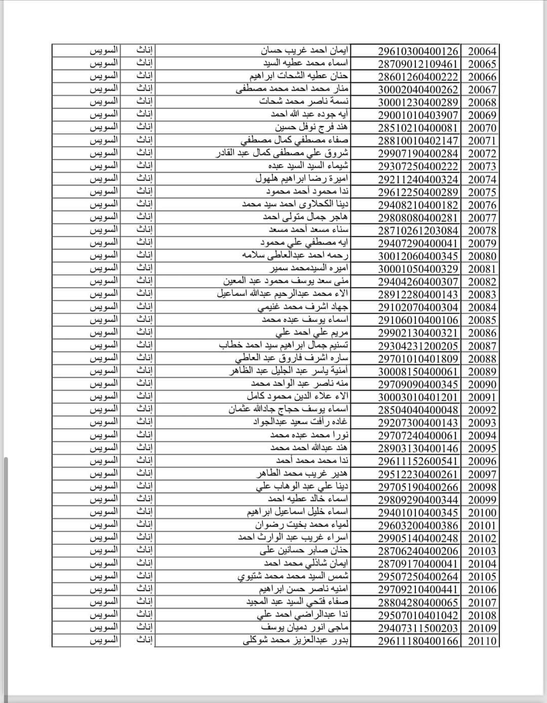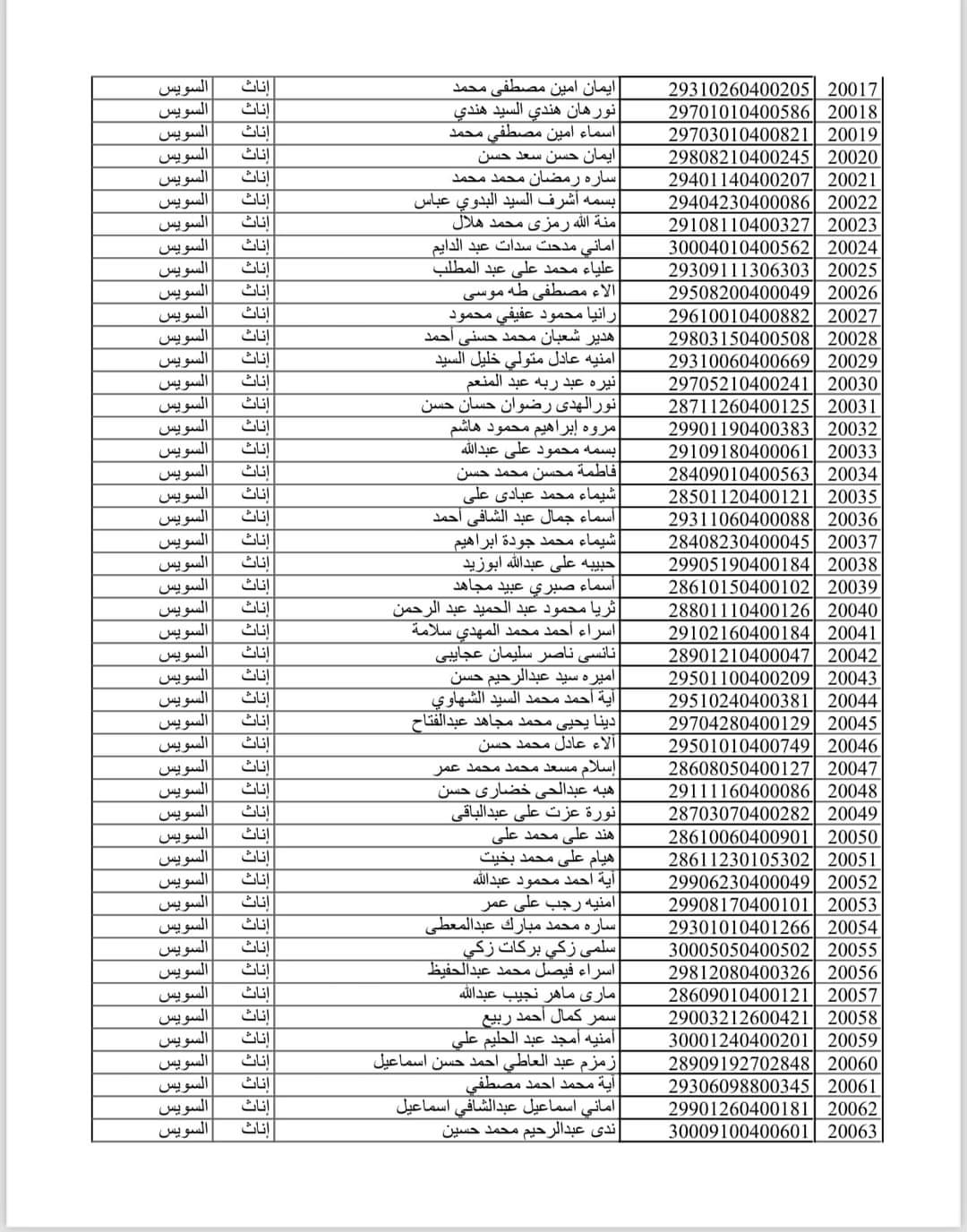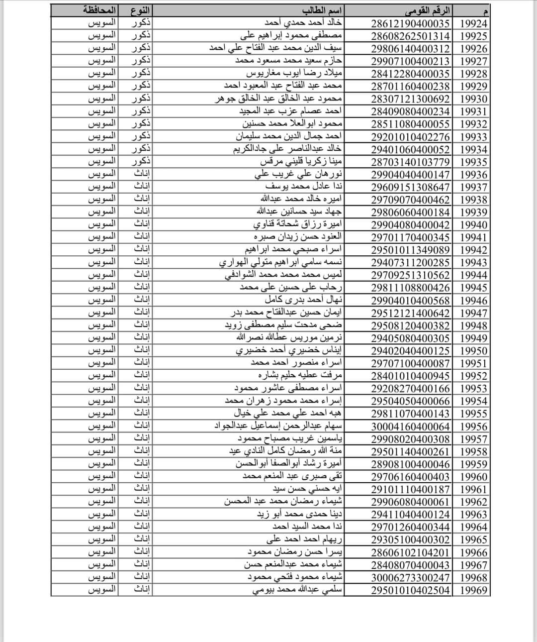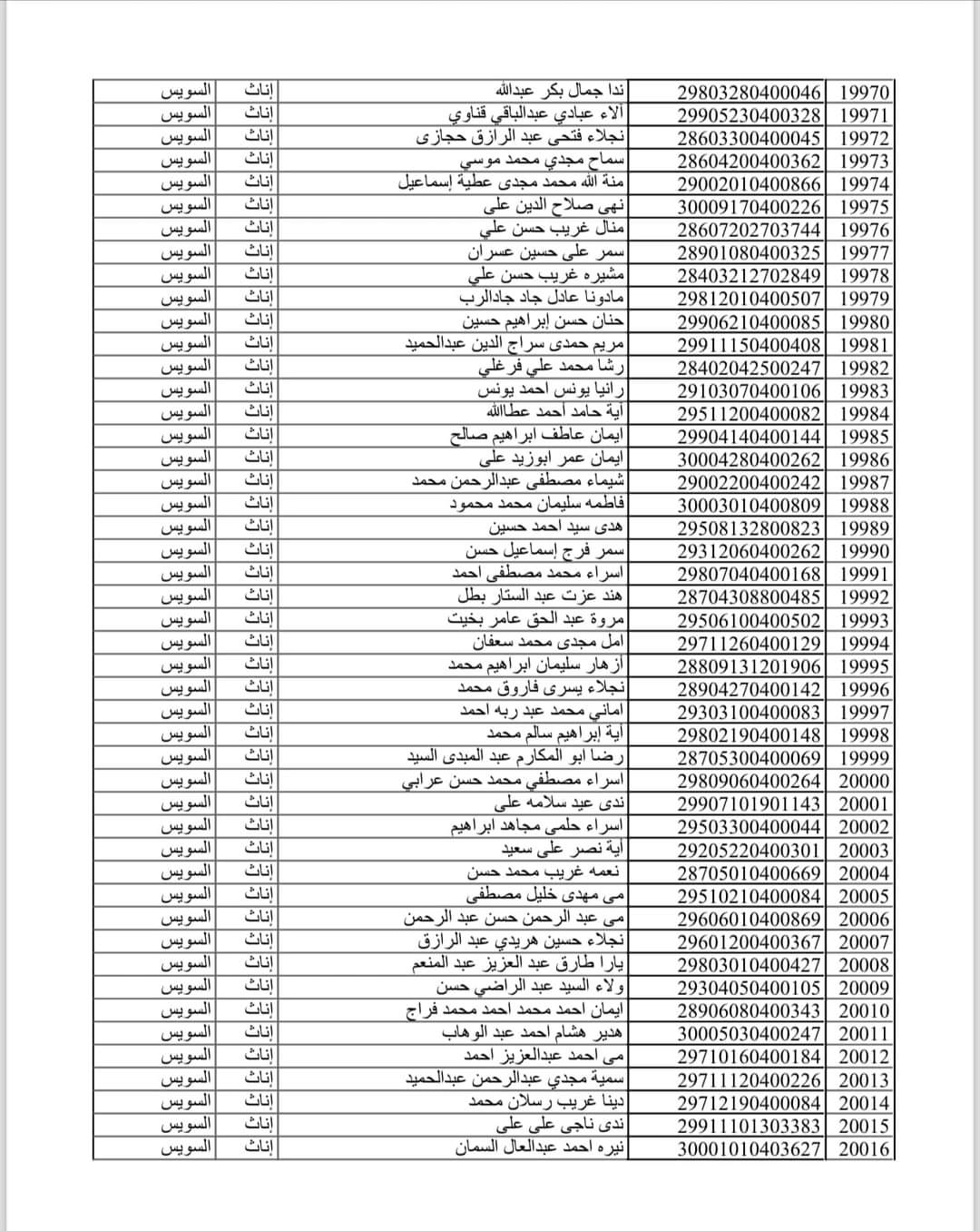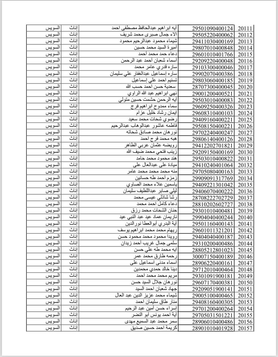 وينشر القاهرة 24، أسماء المقبولين في المسابقة التي أعلنت عنها مديرية التربية والتعليم بمحافظة السويس، كما يأتي: