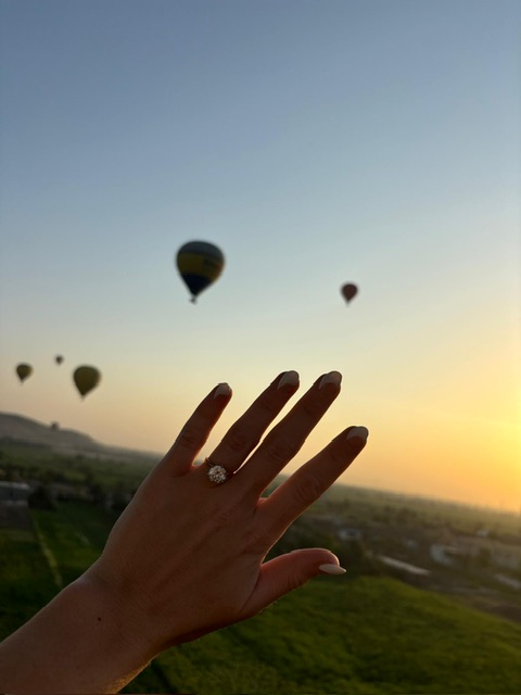 وشهدت إحدى رحلات البالون الطائر بالأقصر أمس الجمعة مشهدا رومانسيا رائعا عندما تقدم سائح أمريكي يدعى Scott بخاتم الزواج لصديقته وحبيبتة Phaze وهما على ارتفاع 1500 قدم من سطح الأرض وسط سعادة غامرة منها ومن المحيطين.