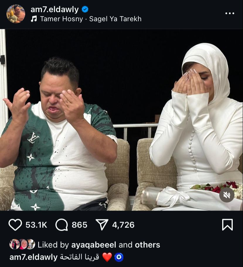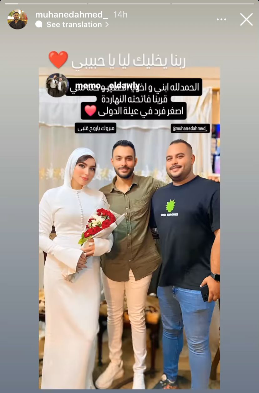 وعلق أمح الدولي أشهر مشجع أهلاوي، على الصورة التي نشرها رفقة العروسة من حفل خطوبة أحد أفراد عائلته، قائلًا: قرينا الفاتحة، ليختلط الأمر على المتابعين ويعتقدون أنه العريس وهذه الصورة المتداولة جانبا من حفل خطوبة.