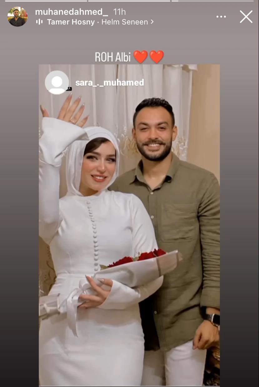 وشارك أمح الدولي أشهر مشجع أهلاوي، متابعينه عبر موقع تبادل الصور والفيديوهات إنستجرام، صورة بجوار العروسة من حفل خطوبة أحد أفراد عائلته، وظهر أمح الدولي رفقة العروسة في الصورة، والتي كانت ترتدي فستانا أبيض وحاملة باقة الورد.
