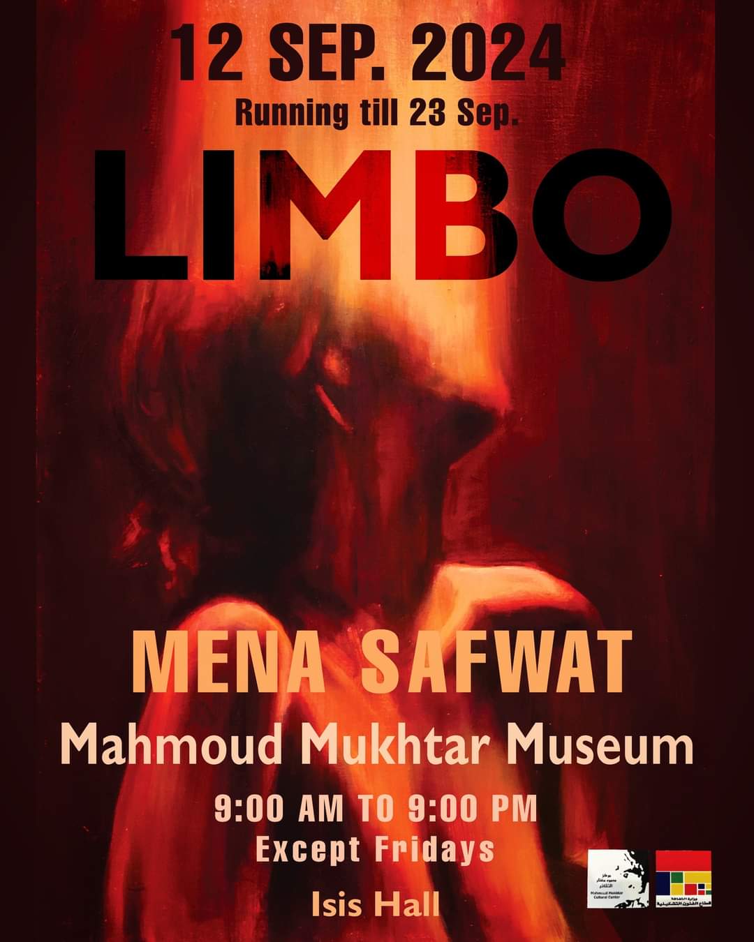 يفتتح الدكتور وليد قانوش رئيس قطاع الفنون التشكيلية، معرض الفنان التشكيلى مينا صفوت بعنوان Limbo، وذلك في تمام الساعة السابعة من مساء يوم الخميس 12 سبتمبر 2024، في قاعة إيزيس بمركز محمود مختار الثقافي.