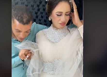 وخلال الفيديو، ظهرت عروس بملامح حزينة في أثناء وجودها داخل صالون نسائي، وأظهرت ملامحها أنها غير راضية عن زواجها.