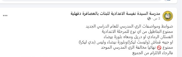 مدرسة إعدادية تحظر على الطالبات ارتداء البناطيل بالدقهلية