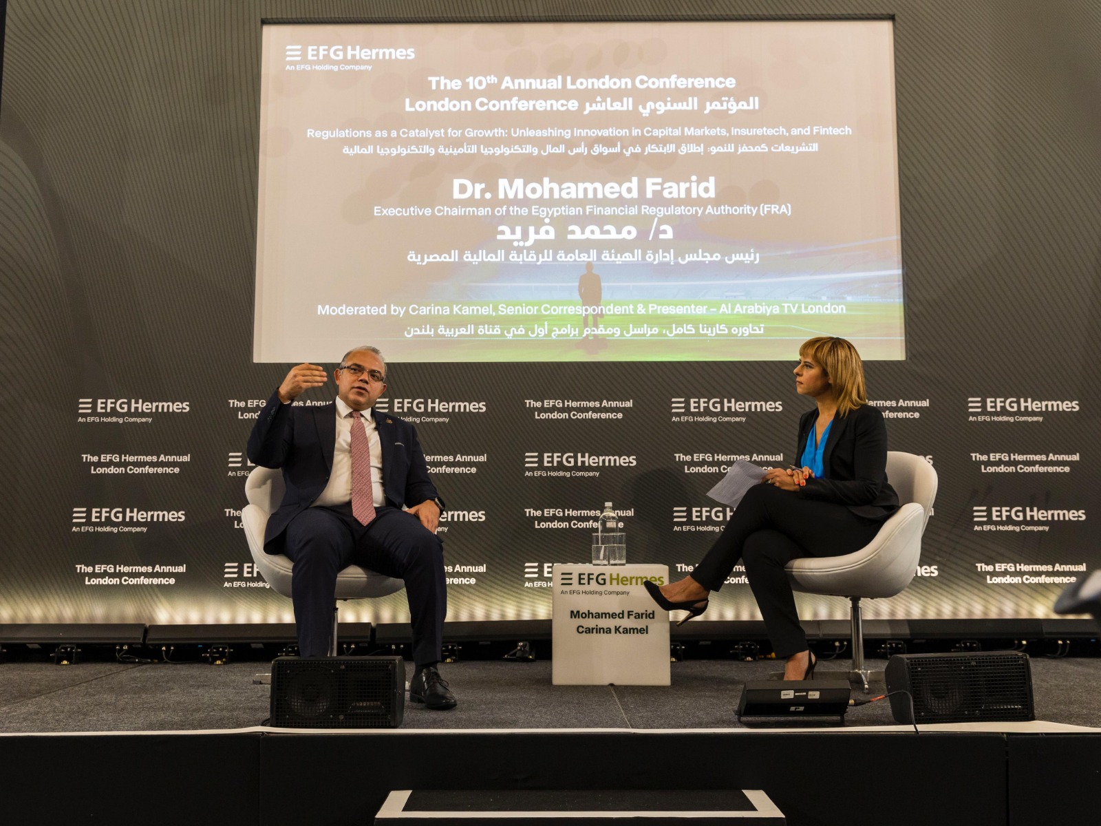 شارك الدكتور محمد فريد، رئيس الهيئة العامة للرقابة المالية، في جلسة حوارية ضمن جلسات مؤتمر إي إف جي هيرميس الاستثماري العاشر المنعقد في لندن، وذلك تحت عنوان التشريعات كمحفز للنمو: إطلاق الابتكار في أسواق رأس المال والتكنولوجيا المالية والتأمينية، أدارت الحوار، كارينا كامل، المراسلة ومقدمة البرامج في تليفزيون العربية.
