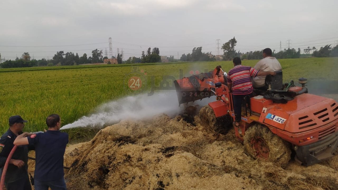 نفوق 4 رؤوس ماشية.. حريق يلتهم حظيرة ومخلفات قش أرز بكفر الزيات بالغربية| صور