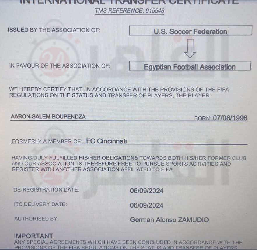 في حال أتم بوبيندزا إجراءات انتقاله إلى رابيد بوخارست ووقع رسميًا على العقود، سيطالب النادي الروماني بالحصول على البطاقة الدولية اللاعب والتي يملكها نادي الزمالك، وفقًا لما أعلنه مسؤولوه في وقت سابق.