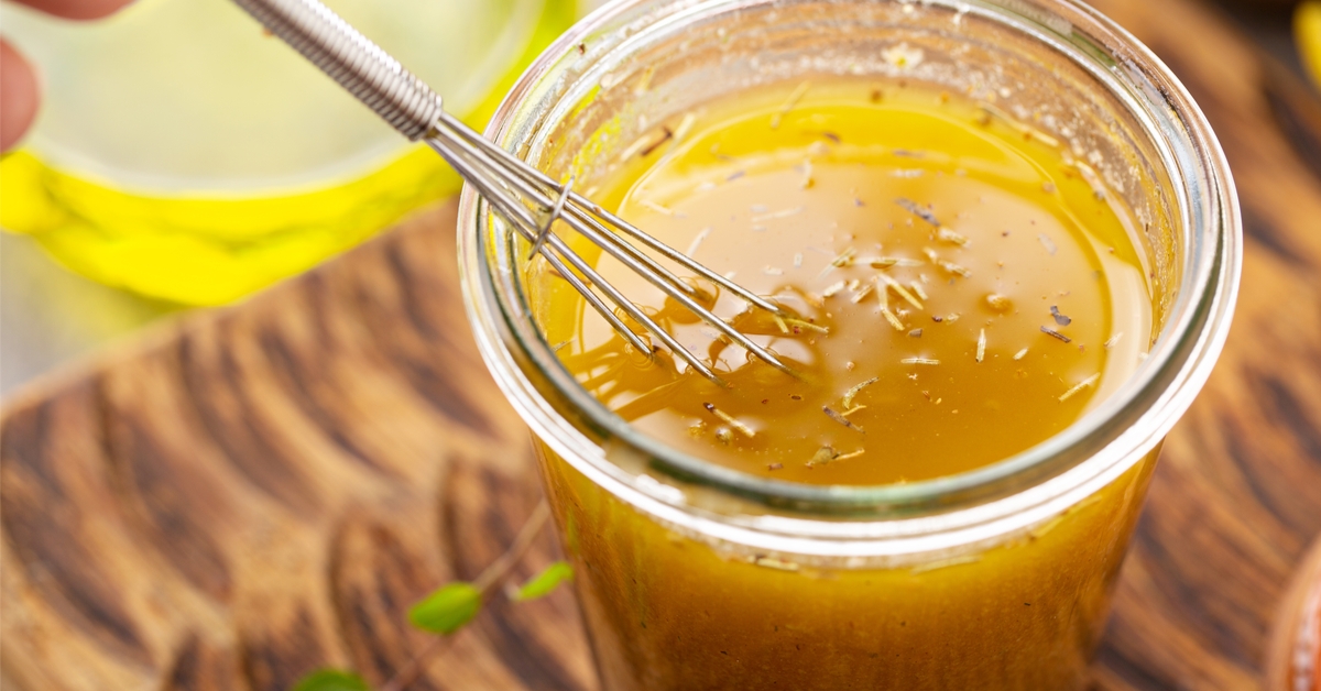 يتم خلط جميع المكونات معًا وتقليبهم ثم وضع دقة الكشري في زجاجة سهلة الاستخدام.