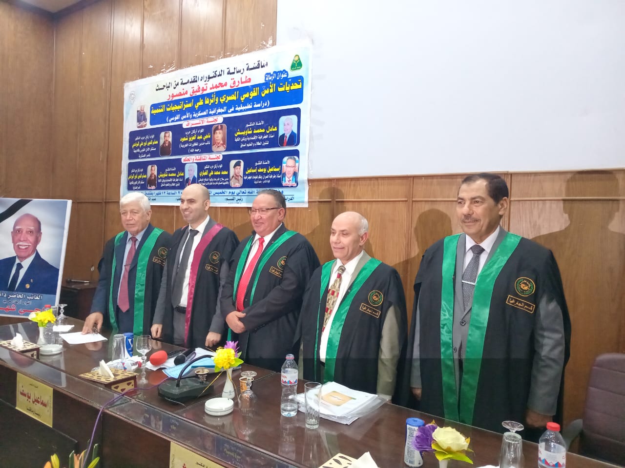 منح طارق منصور درجة الدكتوراه بتقدير ممتاز في تحديات الأمن القومي وآثرها على استراجيات التنمية| صور