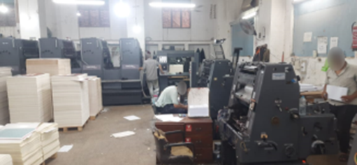 عقب تقنين الإجراءات بالتنسيق مع الجهات الأمنية المعنية تم استهداف المطبعة المشار إليها، وضبط المدير المسئول، وعثر بداخلها على 9000 كتاب وغلاف دراسي خارجي لمختلف المواد والسنوات الدراسية بدون ترخيص أو تفويض من أصحاب الحقوق المادية والأدبية.