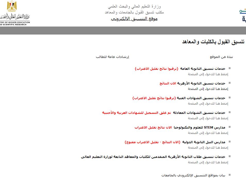 - الذهاب إلى موقع التنسيق الإلكتروني ( رابط تعديل رغبات الثانوية الأزهرية).