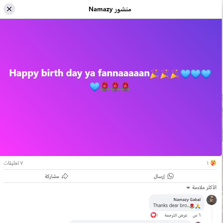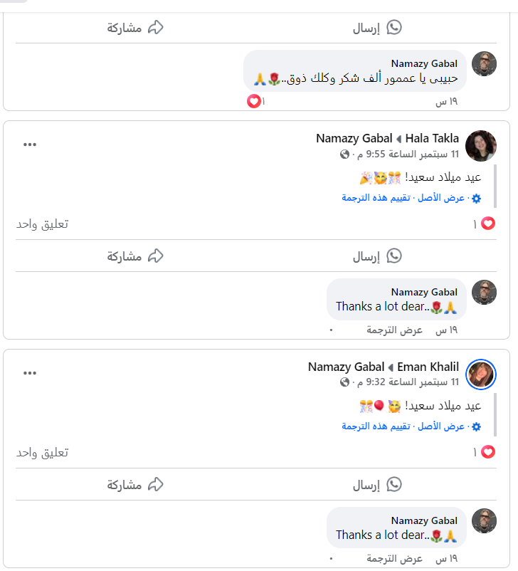 وكان احتفل نمازي جبل بعيد ميلاده يوم 11 سبتمبر الماضي، وانهالت عليه التهاني من متابعيه، من يومها حتى أمس، وظل نمازي يرد على التعليقات حتى قبل 6 ساعات من وفاته.