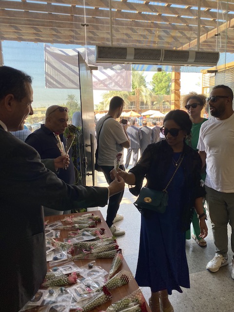 ووزع رئيس مدينة الأقصر الورود والهدايا على السائحين الأجانب، والذين استقبلوا تلك المبادرة بالابتسامة والفرحة والتقاط الصور التذكارية معه، احتفالًا بيوم السياحة العالمي.