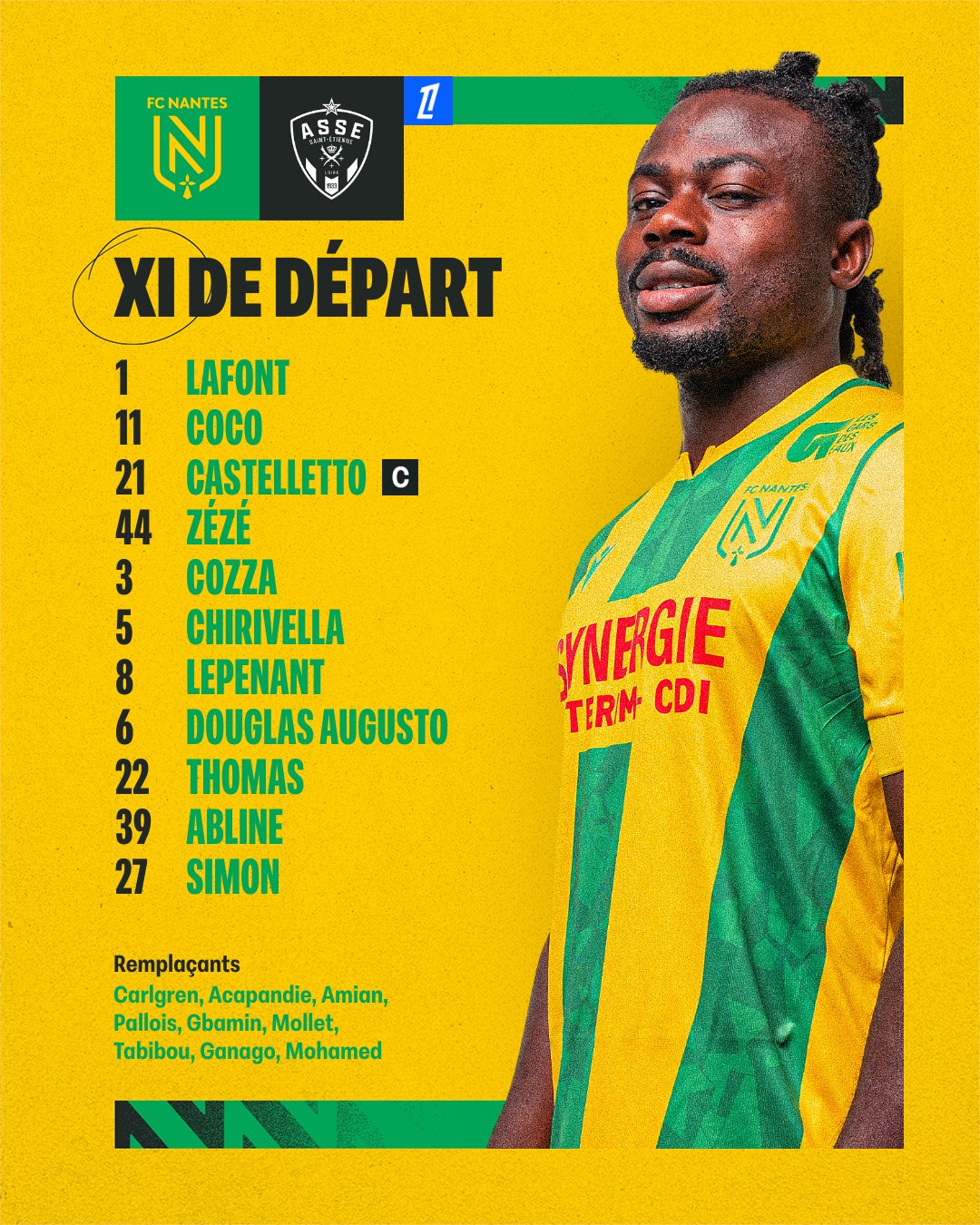 وجاء التشكيل الخاص بفريق نانت الفرنسي في مباراة سانت إيتيان في الدوري كالتالي: