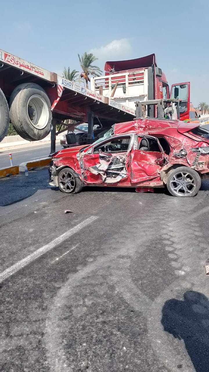 سيارة تريلا تدهس ملاكي على الطريق الإقليمي بالمنوفية| صور