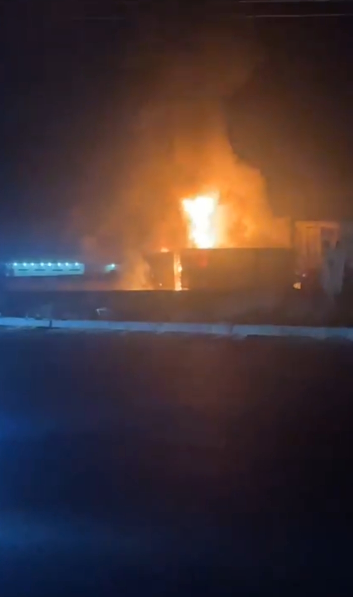 اشتعال النيران في سيارة نقل قبل مدينة الضبعة