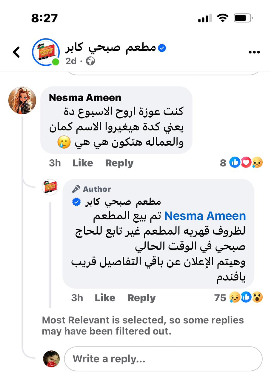 الصفحة الرسمية لـ مطعم صبحي كابر تعلن بيعه.. ومدير المطعم يرد| خاص