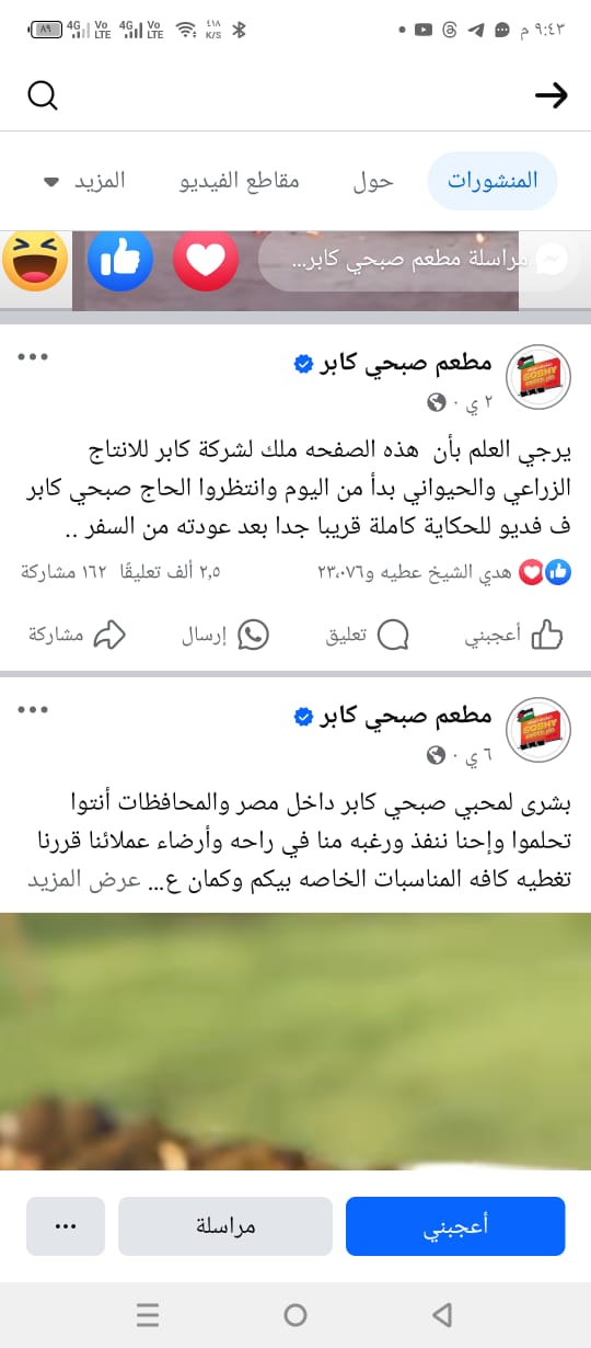 القاهرة 24 يتواصل مع الصفحة الرسمية لمطعم صبحي كابر