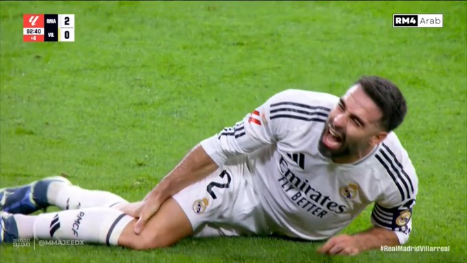 تعرض الإسباني داني كارفخال ظهير فريق ريال مدريد، لـ إصابة قوية في مباراة ريال مدريد وفياريال التي أقيمن بين الفريقين، ضمن منافسات مسابقة الدوري الإسباني لا ليجا.