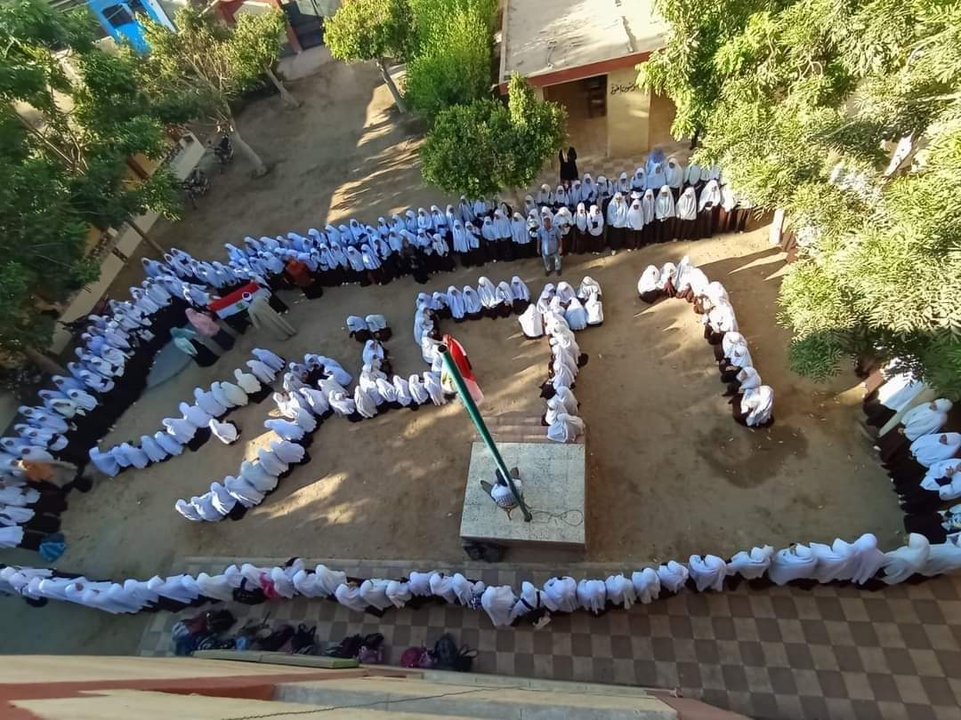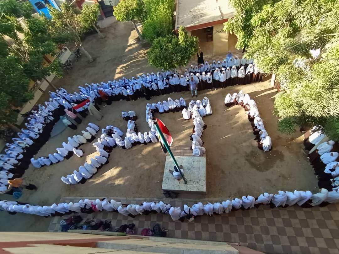 نظمت طالبات معهد فتيات أولاد نجم الإعدادي الثانوي الأزهري بنجع حمادي شمالي محافظة قنا، اليوم الأحد، عرضًا في طابور الصباح كتبن خلاله 6 أكتوبر بأجسادهن، احتفالا بذكرى انتصارات أكتوبر.