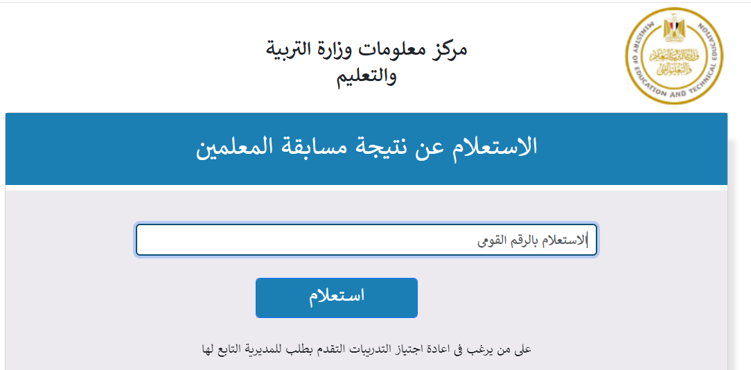 الاستعلام عن نتيجة مسابقة التربية والتعليم بالرقم القومي 2024
