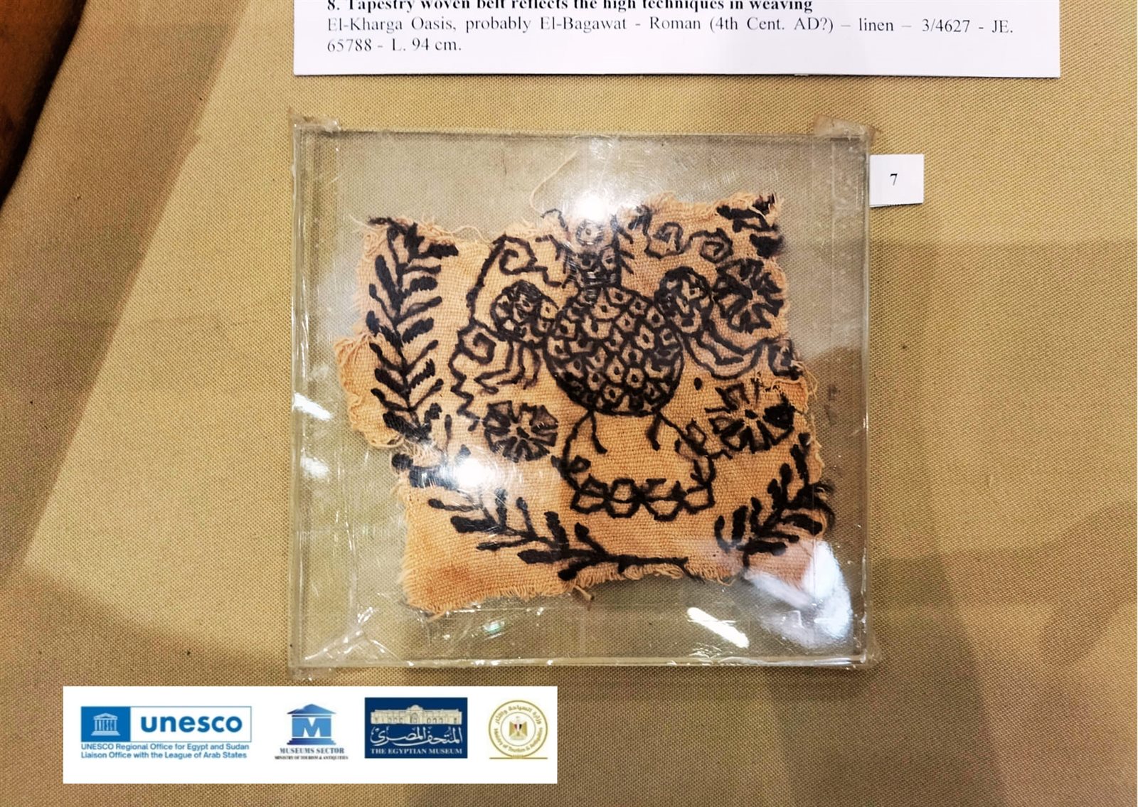 وقالت إدارة المتحف المصري بالتحرير، في بيان لها إن القطع تعرض بمعرض التراث الثقافي غير المادي جسر للحوار بين الثقافات، والمقام بالتعاون مع المكتب الإقليمي لليونسكو بمصر والسودان بقاعة العرض المؤقت بالمتحف المصري بالقاهرة 44 أرضي، ولمدة شهر ونصف.