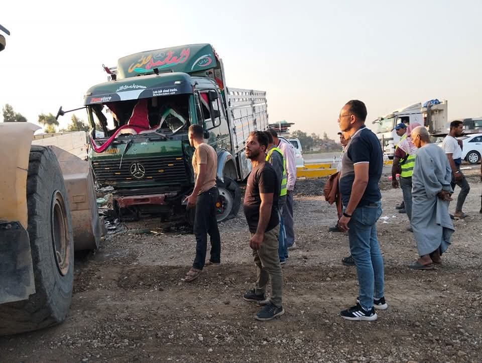 رفع آثار حادث تصادم سيارتين نقل على الطريق الإقليمي بالمنوفية| صور