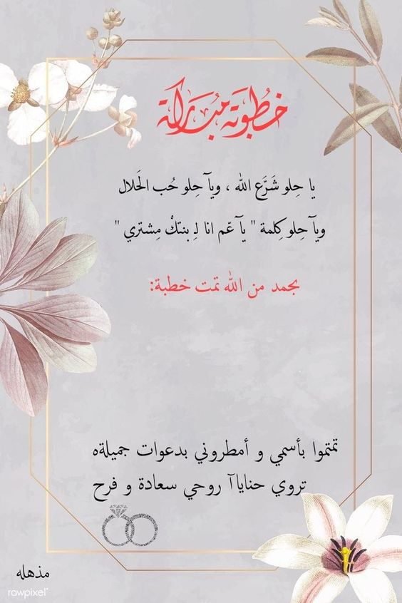 - [اسم العروس] و[اسم العريس]، قلب واحد وعشق واحد، ألف مبروك خطوبتكما، ونتمنى أن يدوم حبكما إلى الأبد.