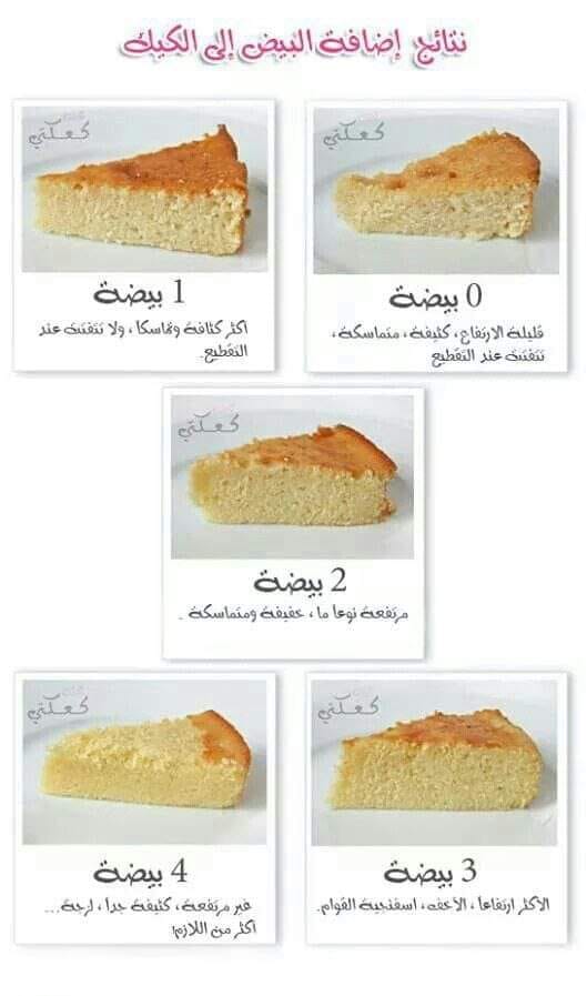 - استخدمي بيضة واحدة أو 3 بيضات لعمل الكيك، ولا تتبعي وصفات الكيك ببيضتين أو بدون بيض لأنها تكون إما مفتتة أو هابطة، ونزيد البيض للكيك الاسفنجي ولكن بطريقة تحضير مختلفة.