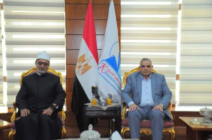 رئيس جامعة كفر الشيخ يستقبل مفتي الجمهورية لرئاسة لجنة مناقشة رسالة دكتوراة بكلية الآداب