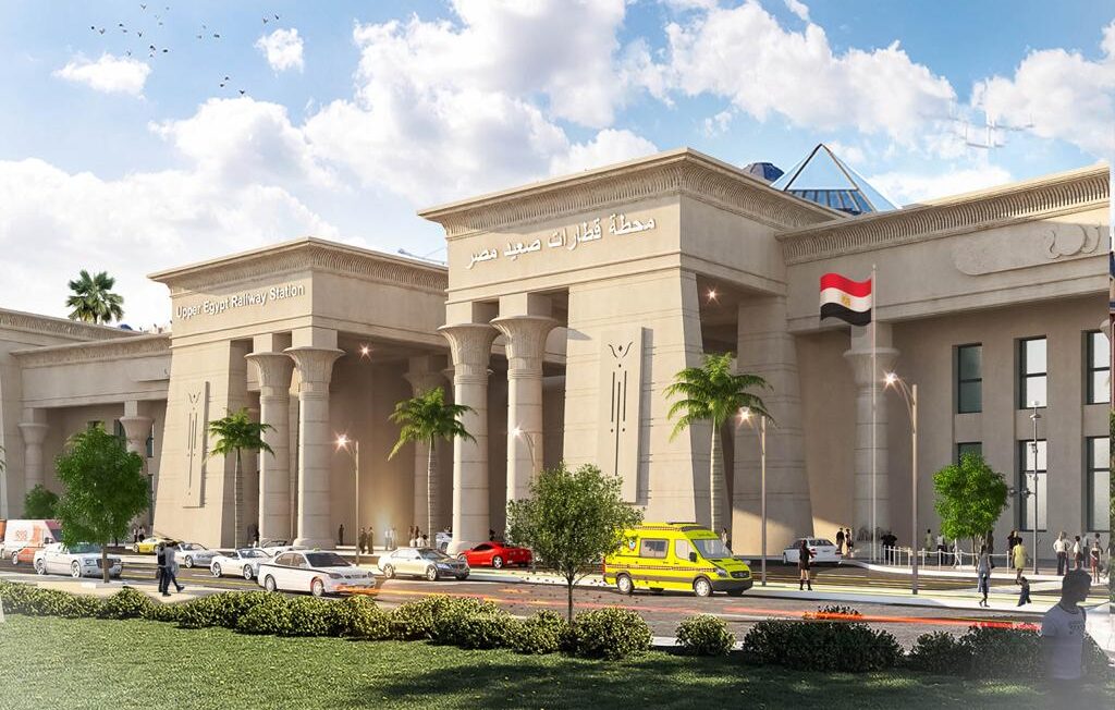 وتعد محطة قطارات صعيد مصر أحد أضخم مشروعات النقل في الشرق الأوسط، حيث تم إقامتها على مساحة 239 ألف م2، بما يعادل نحو 57 فدانًا، لتفوق بذلك مساحة محطة رمسيس بالقاهرة بـ3 أضعاف، وتتزين أعمال المحطة باحتوائها على هرم زجاجي كبير، ويشمل المشروع تنفيذ مبنى المحطة الرئيسي على مساحة 31.000 م2 بإجمالي مساحة بنائية 112.000 م2 وملحقات ومباني خدمية وورش صيانة وأرصفة، وكذلك خطوط سكك حديدية على مساحة 164.000 م2 وعمارات استثمارية على مساحة 44.000 م2.