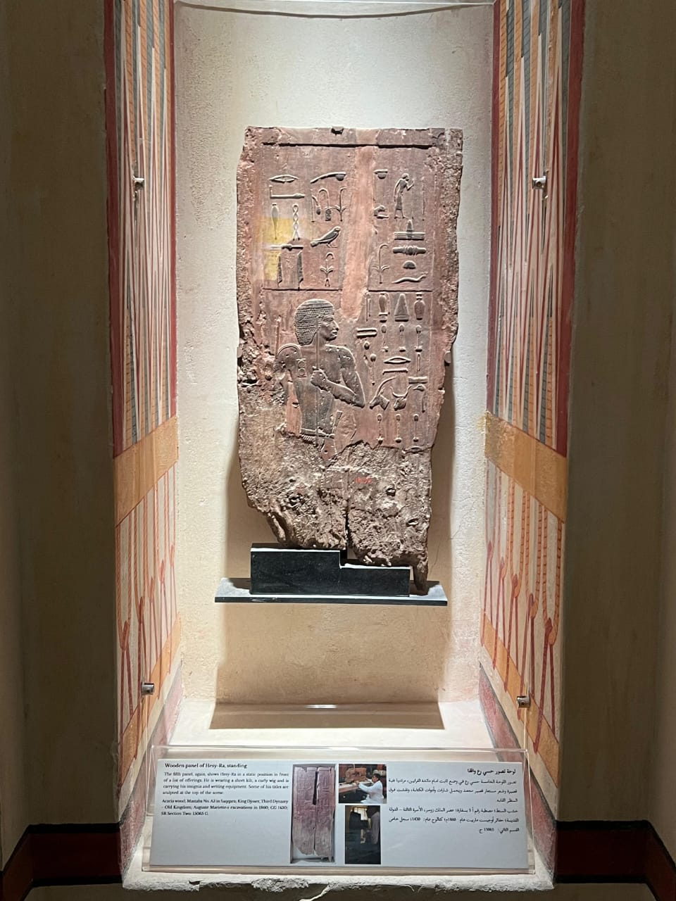 ويقدم العرض الجديد للوحات عملية محاكاة سياقية كاملة لشكلها داخل المصطبة وفقًا للنشر العلمي لها، حيث تم بناء ممر طبق الأصل من الممر الغربي لمصطبة حسي – رع بسقارة، وعمل كوات تحتوي كل واحدة على اللوحات الخشبية الحقيقية، كما تم عمل محاكاة للجدار الشرقي للمصطبة وتزيينه بنقوش شبيهة لما كانت عليه المصطبة الأصلية.