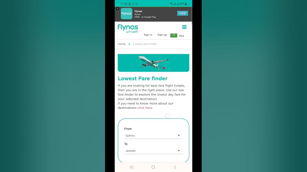 - إدخال المعلومات: أدخل مدينة المغادرة (مثلًا: القاهرة) ومدينة الوصول (مثلًا: جدة) وتواريخ السفر المرجوة.