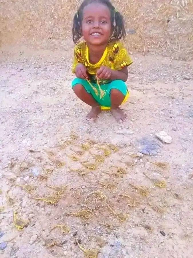 تداول مستخدمو مواقع التواصل الاجتماعي صورة لصغيرة سودانية تحيط بها عدد كبير من العقارب التي اصطادها أهالي القرية التي تعيش بها، والتي يموت بها بشكل يومي عدد من الصغار في نفس سنها بسبب لدغة العقارب السامة، حيث زاد الوضع المأساوي انتشار العقارب بعد الحرب لعدم توافر وسائل القضاء عليها.