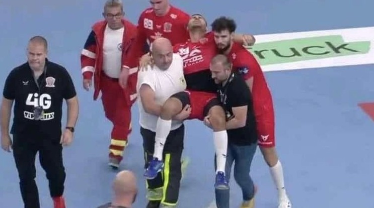 إصابة يحيى الدرع لاعب منتخب مصر لـ اليد في مباراة فريقه المجري