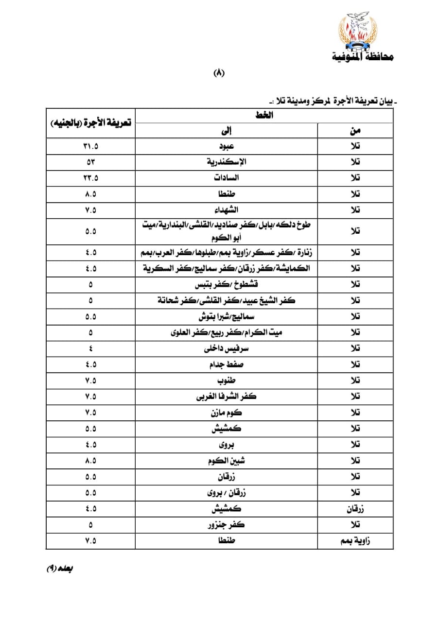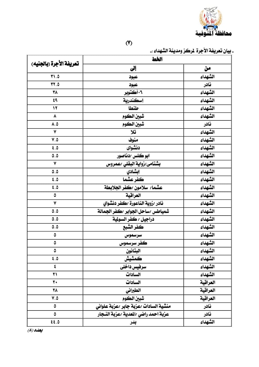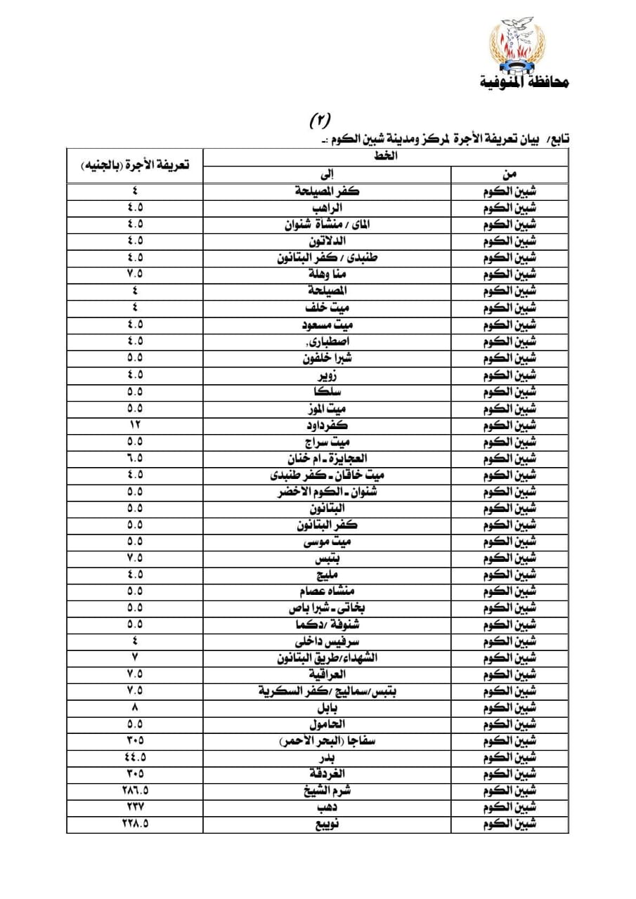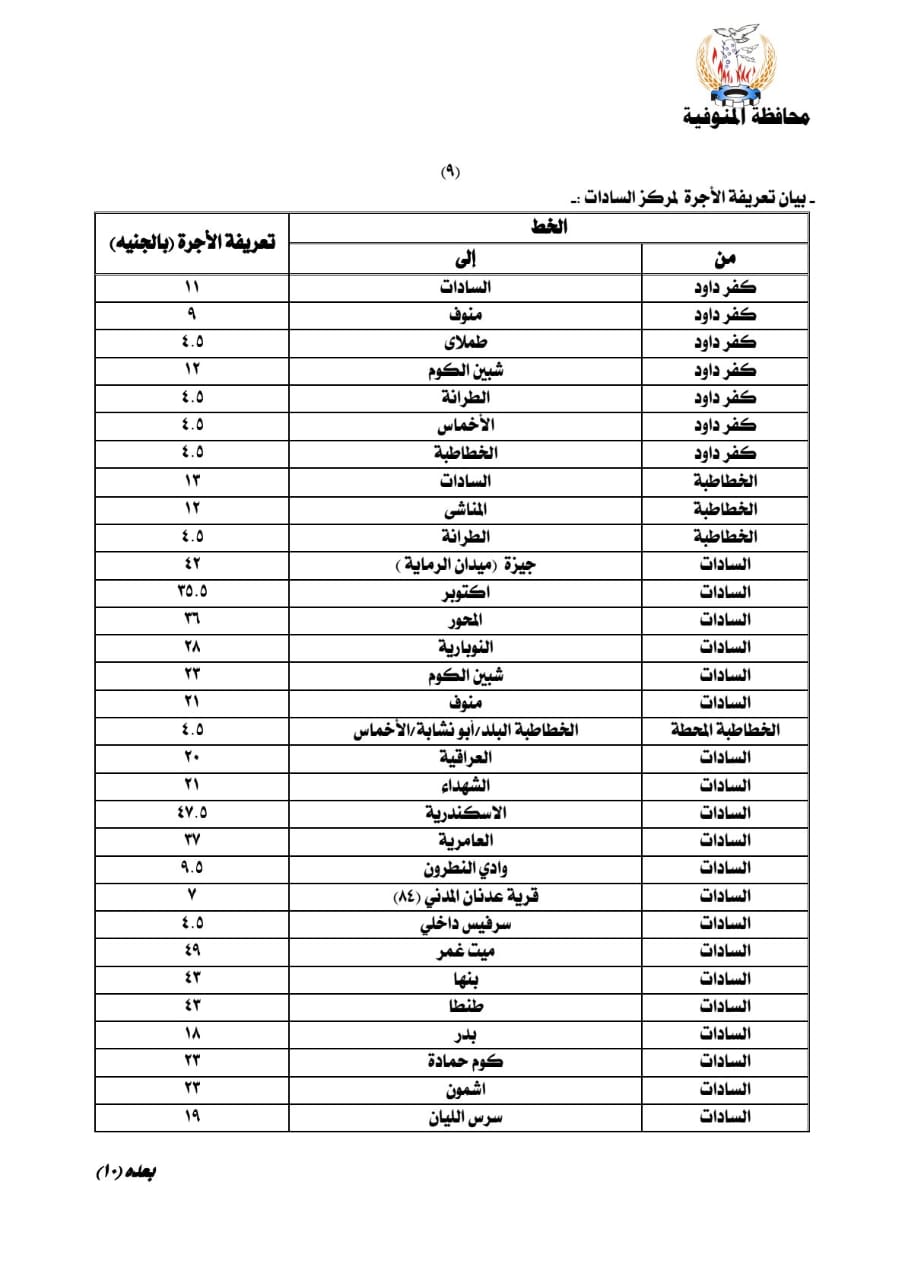 تعريفة الركوب بالمنوفية بعد تحريك سعر الوقود