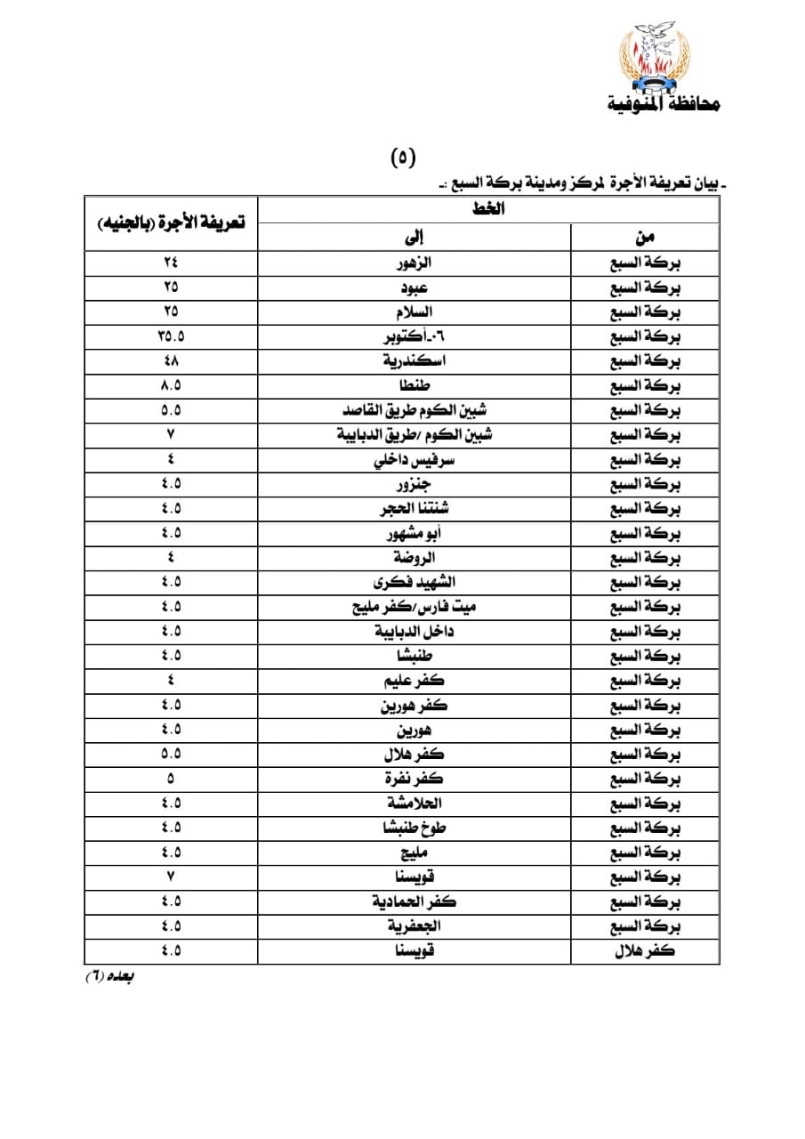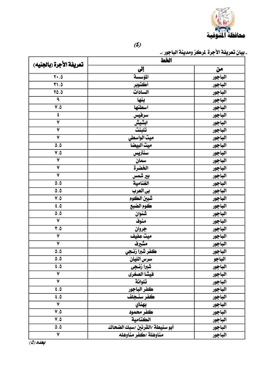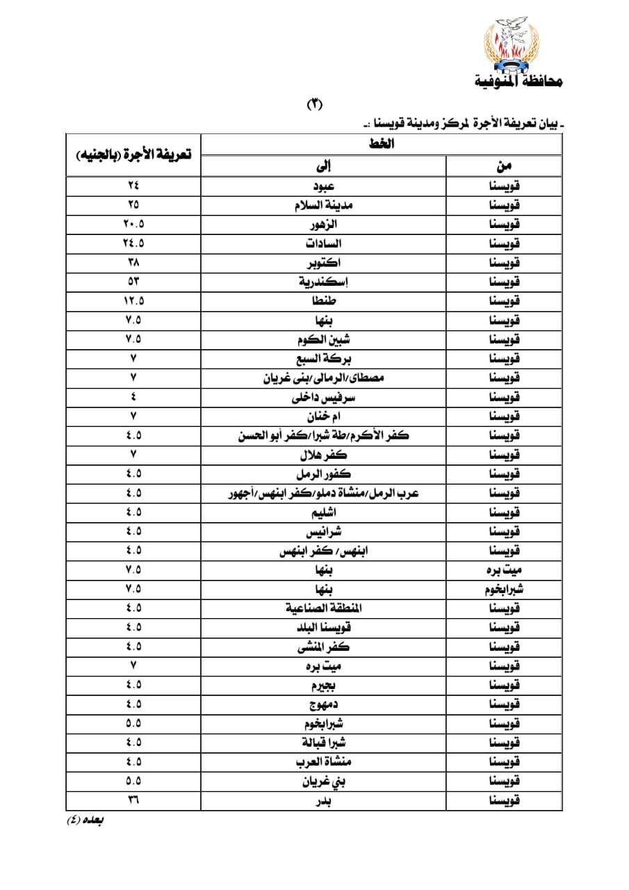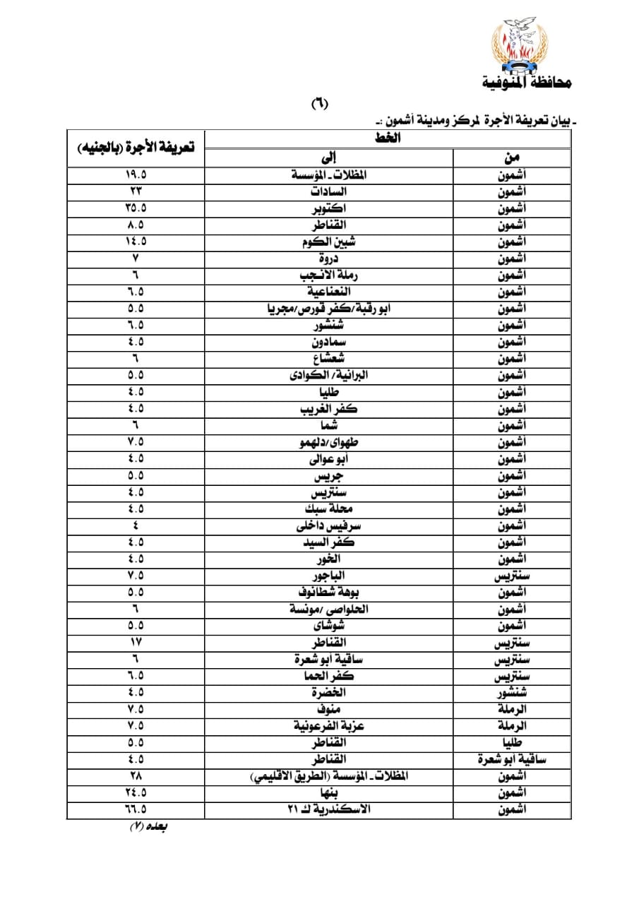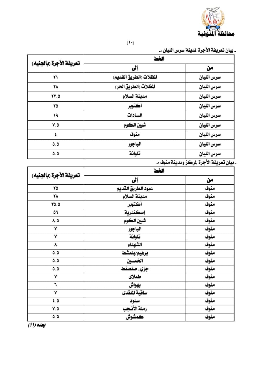 تعريفة الركوب بالمنوفية بعد تحريك سعر الوقود