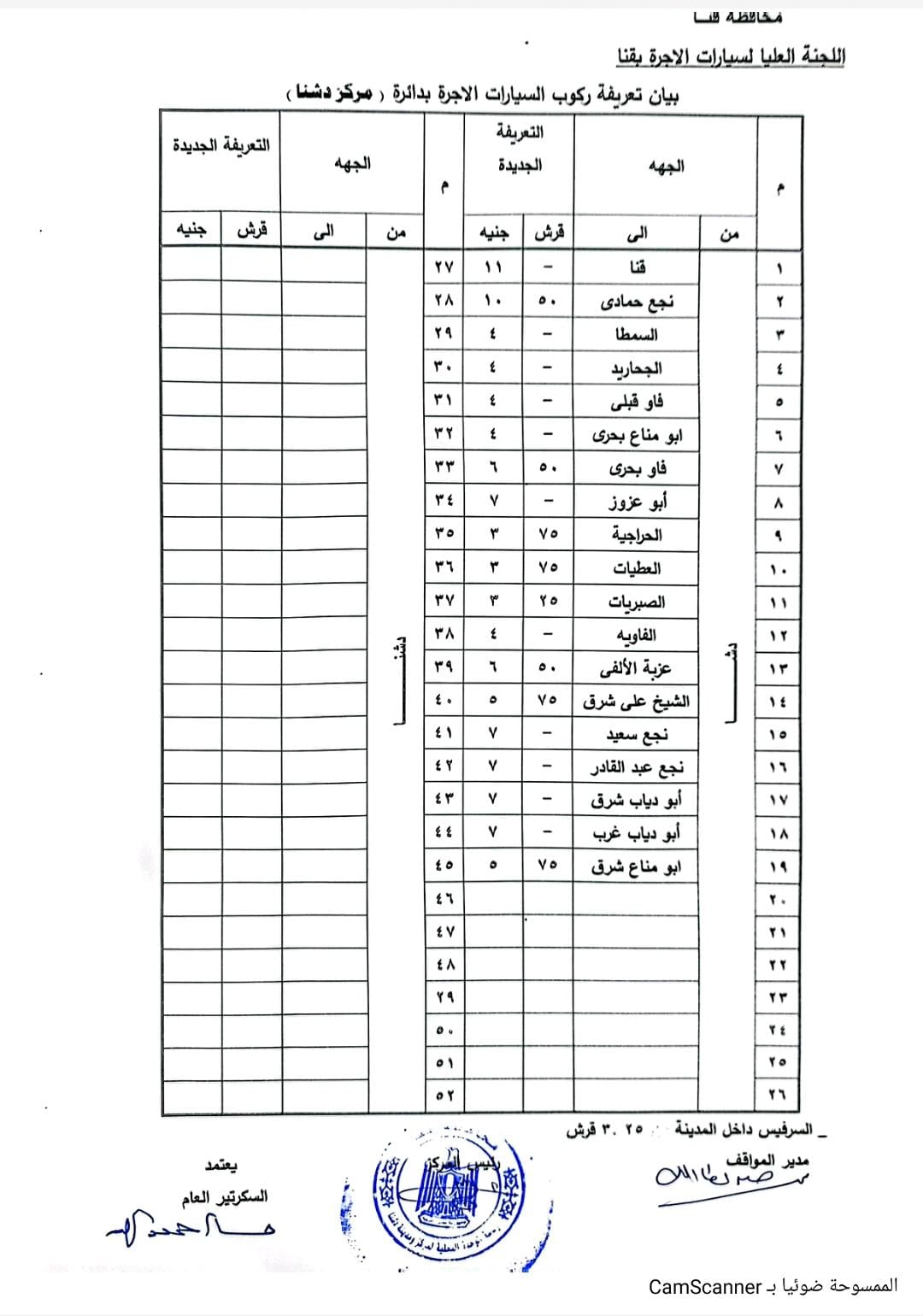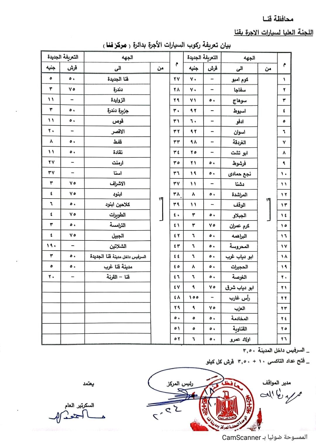 تعريفة الركوب الجديدة لسيارات الأجرة في قنا