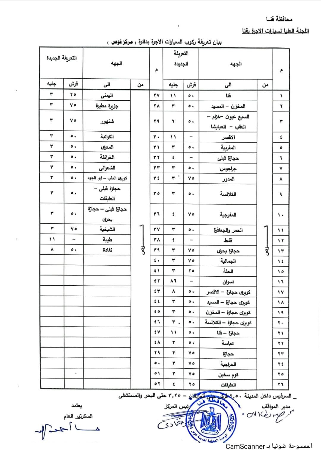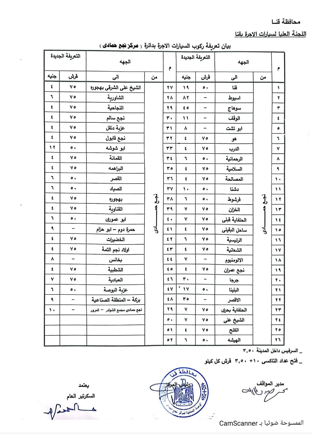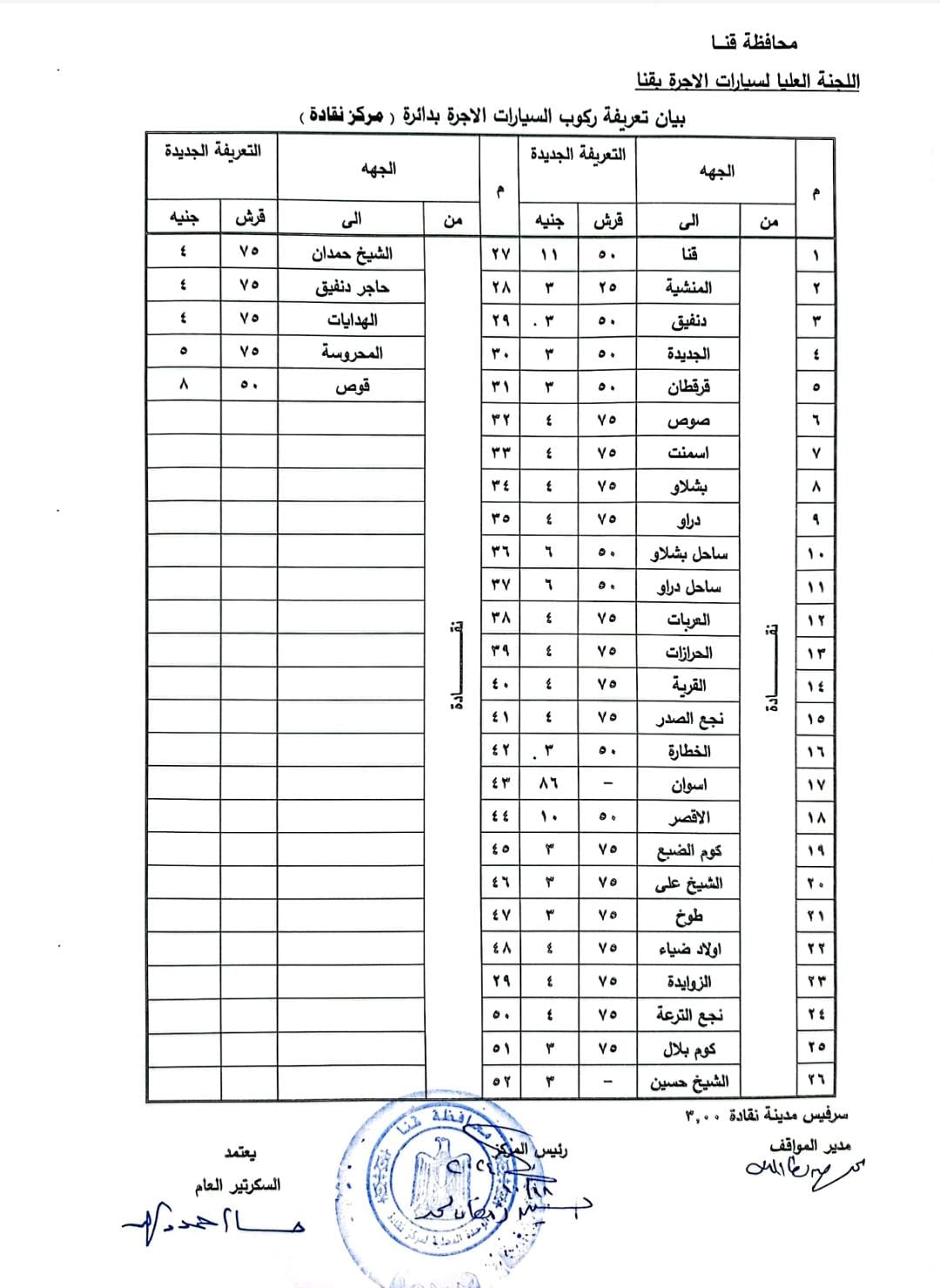 التعريفة الجديدة لسيارات الأجرة بقنا