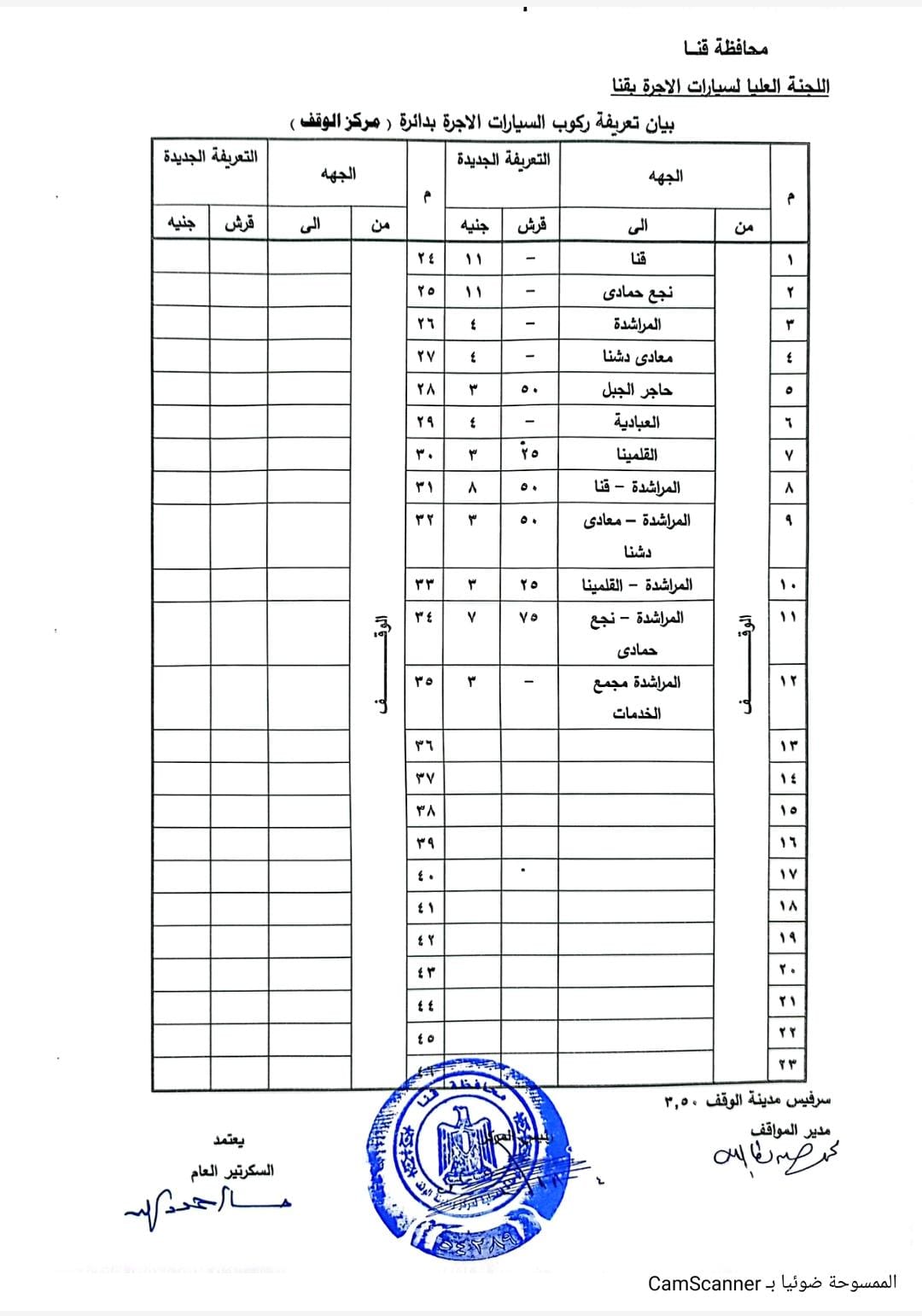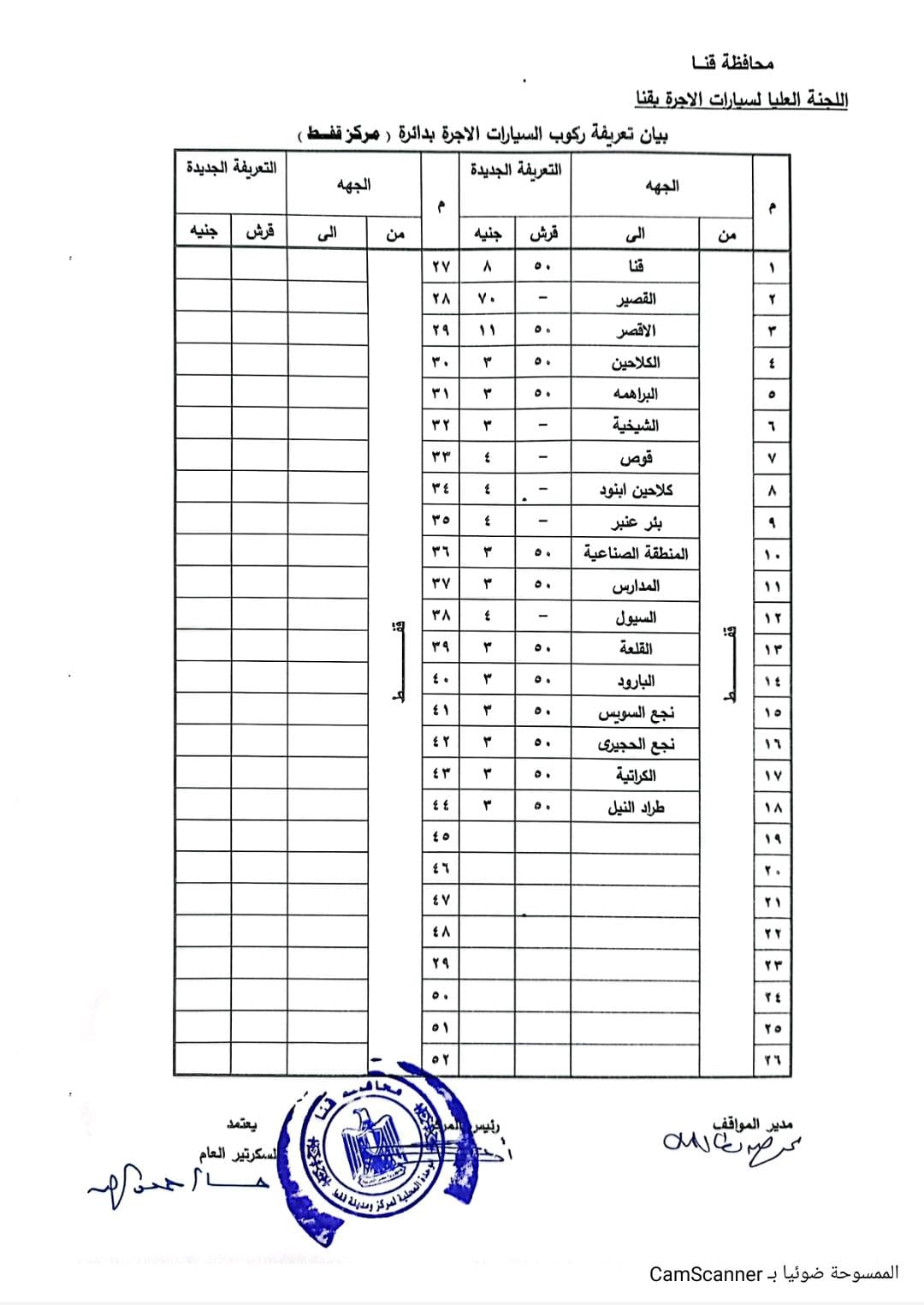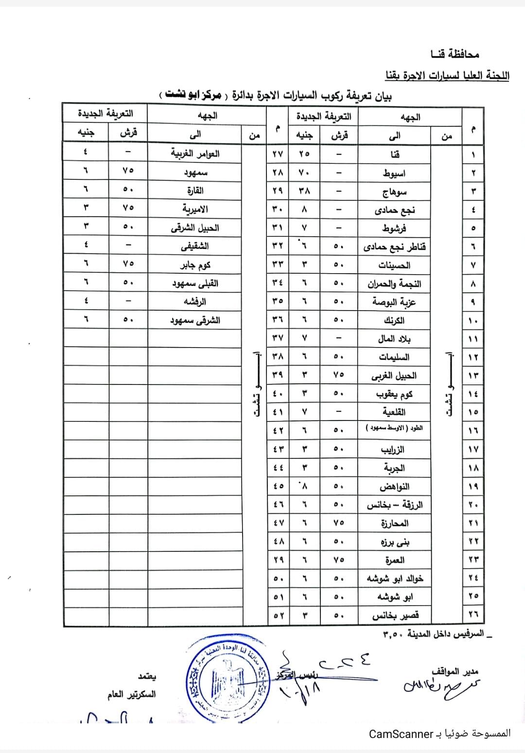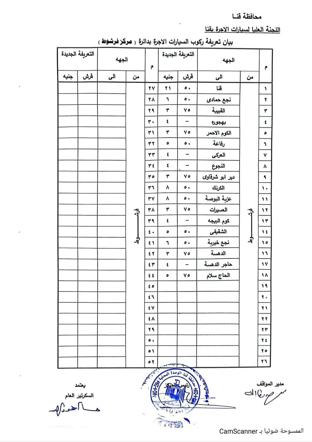 التعريفة الجديدة لسيارات الأجرة بقنا