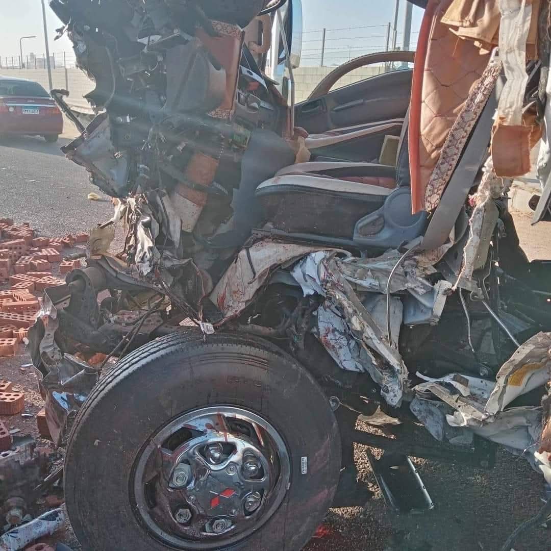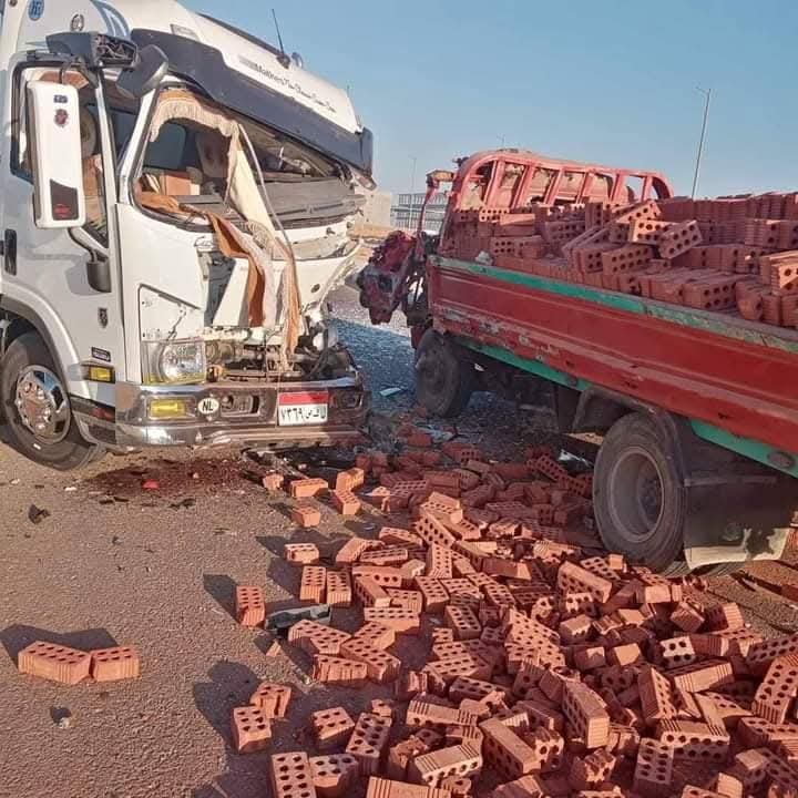 تفاصيل تصادم سيارتين نقل بطريق السادات