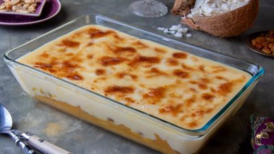 - ساوي المهلبية على سطح صينية البطاطا وأدخليها الفرن أسفل الشواية لمدة 20 دقيقة.